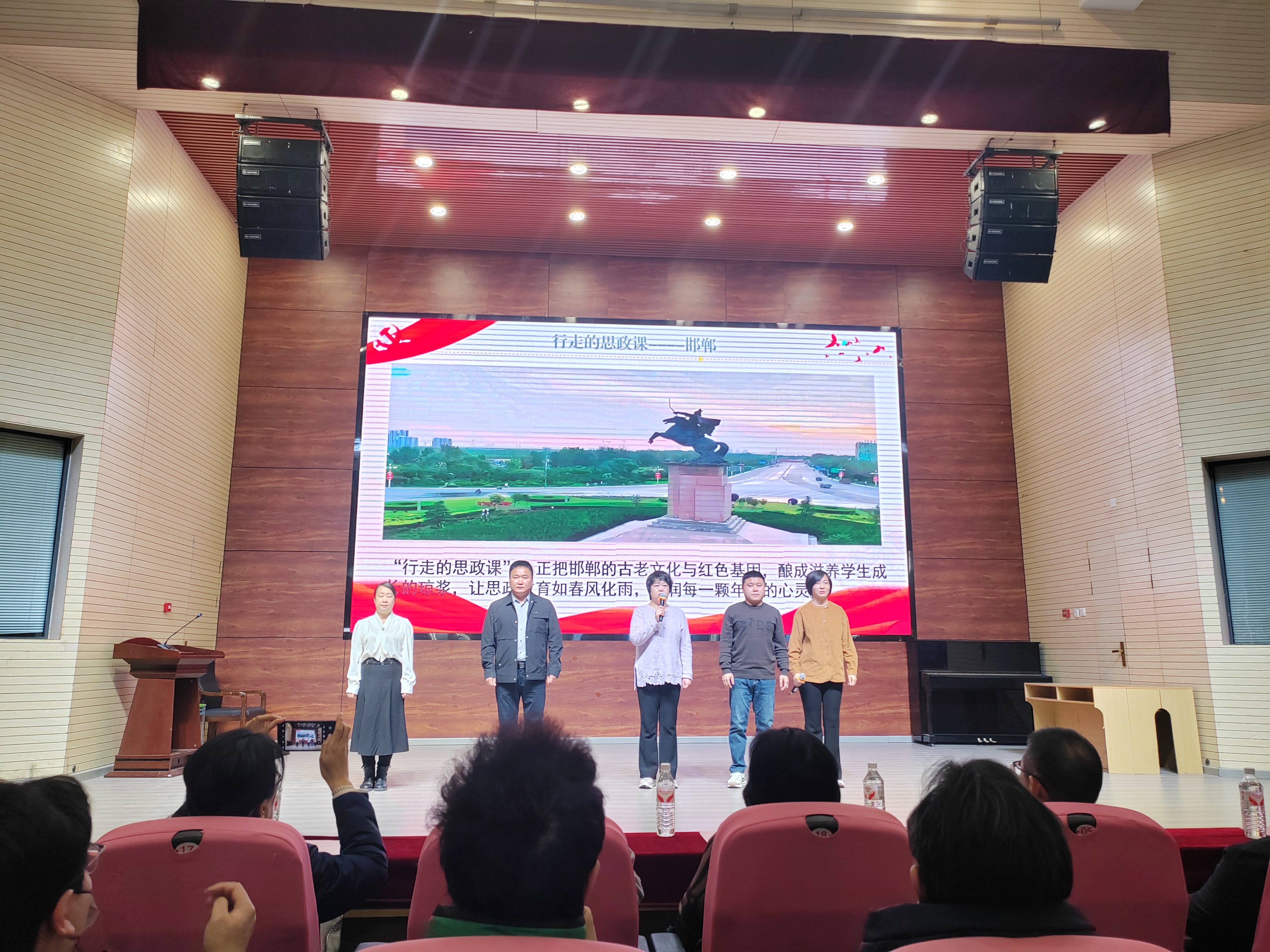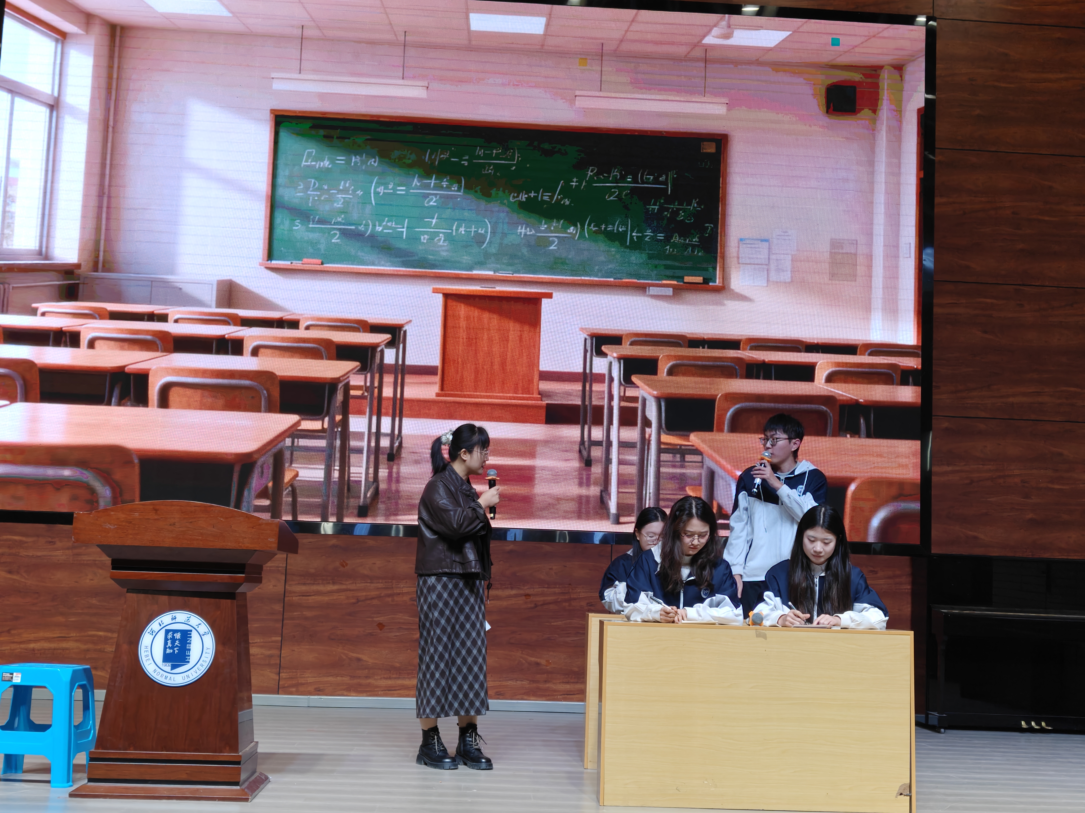 在学科成果展示环节,九个承办学院依次登台,以情景剧、诗朗诵、教育叙事、主题汇报、短剧等丰富形式,生动呈现了三年来的成长轨迹与育人智慧。政治学科以《红色领航思政铸魂》展现了立德树人的使命担当;生物学科深情讲述了《三载育禾,一生向阳》的成长故事;文学院以诗朗诵《向光而行,感恩相遇》抒发了对导师与同窗的深厚情谊;化学学科的《“变化之学,创造之美”》、数学学科的《启航》、地理学科的《经纬之间:从课堂到课题的蜕变旅程》、物理学科的《师路.冀忆.启新程》分别通过课堂重构、课题研究、教育戏剧等形式,展示了在教学创新、科研融合与专业升华方面的扎实成果;历史文化学院项目管理班主任刘京京老师以《为历史教育强基,为骨干教师赋能》为题,系统汇报了项目设计的逻辑与实施路径;外语学院则通过情景剧《成长“戚”遇记》,生动演绎了人工智能与英语教学融合的探索历程。