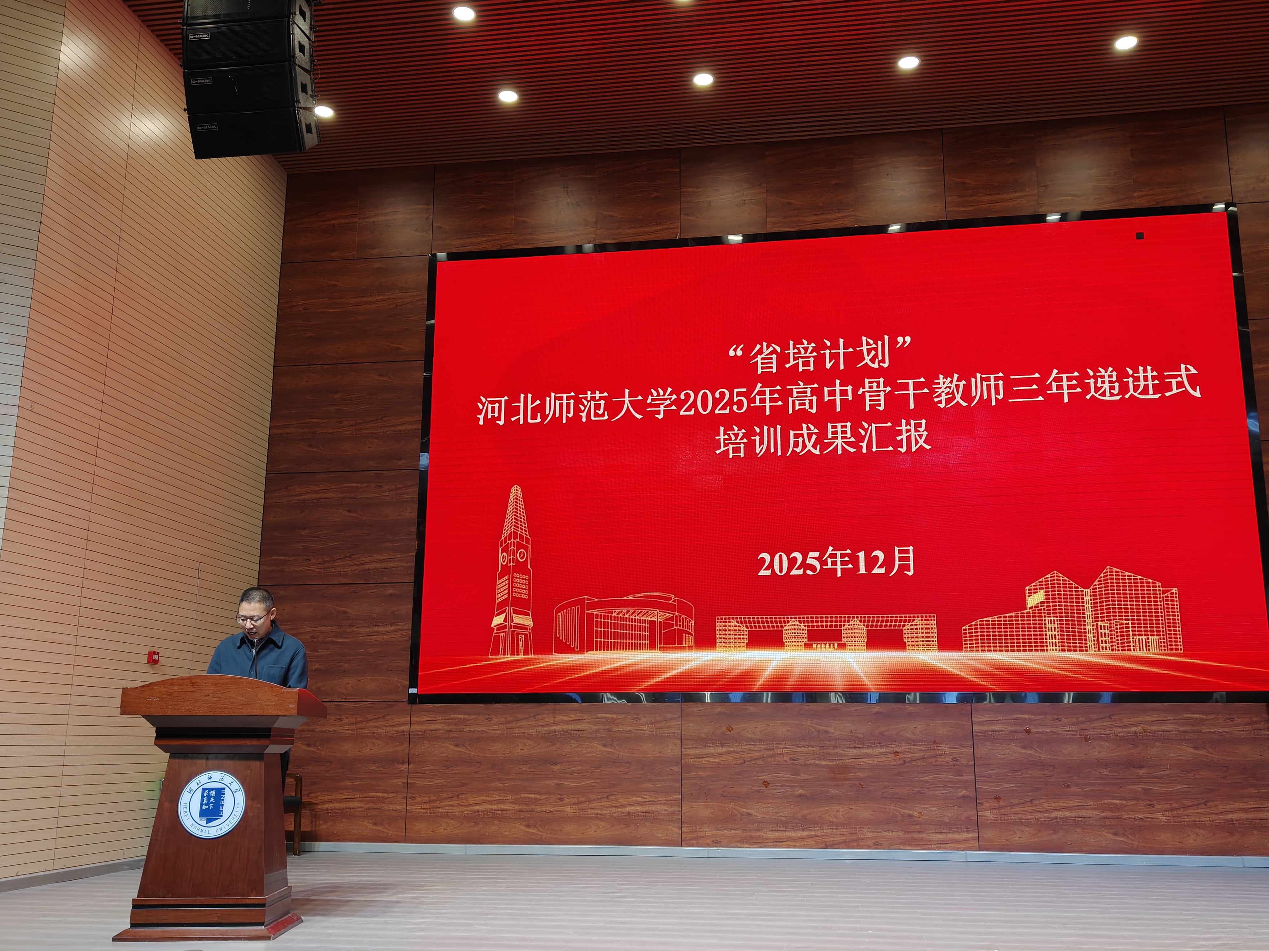 为系统总结河北省高中骨干教师三年递进式培训项目成果,生动展现“国培”“省培”学员的专业成长与引领风采,12月6日,河北师范大学继续教育学院在美术与设计学院报告厅隆重举办“以骨干之力,燃教育之光”首届“国培”“省培”阶段性成果汇报。河北省中小学教师继续教育中心副主任邱爱辉,河北师范大学继续教育学院院长王喜,继续教育学院党总支书记张云晶出席活动。各承办学院负责人、项目专家及管理教师以及来自全省各地的骨干教师学员代表共同参与了这场凝聚智慧、展现成长的盛会。