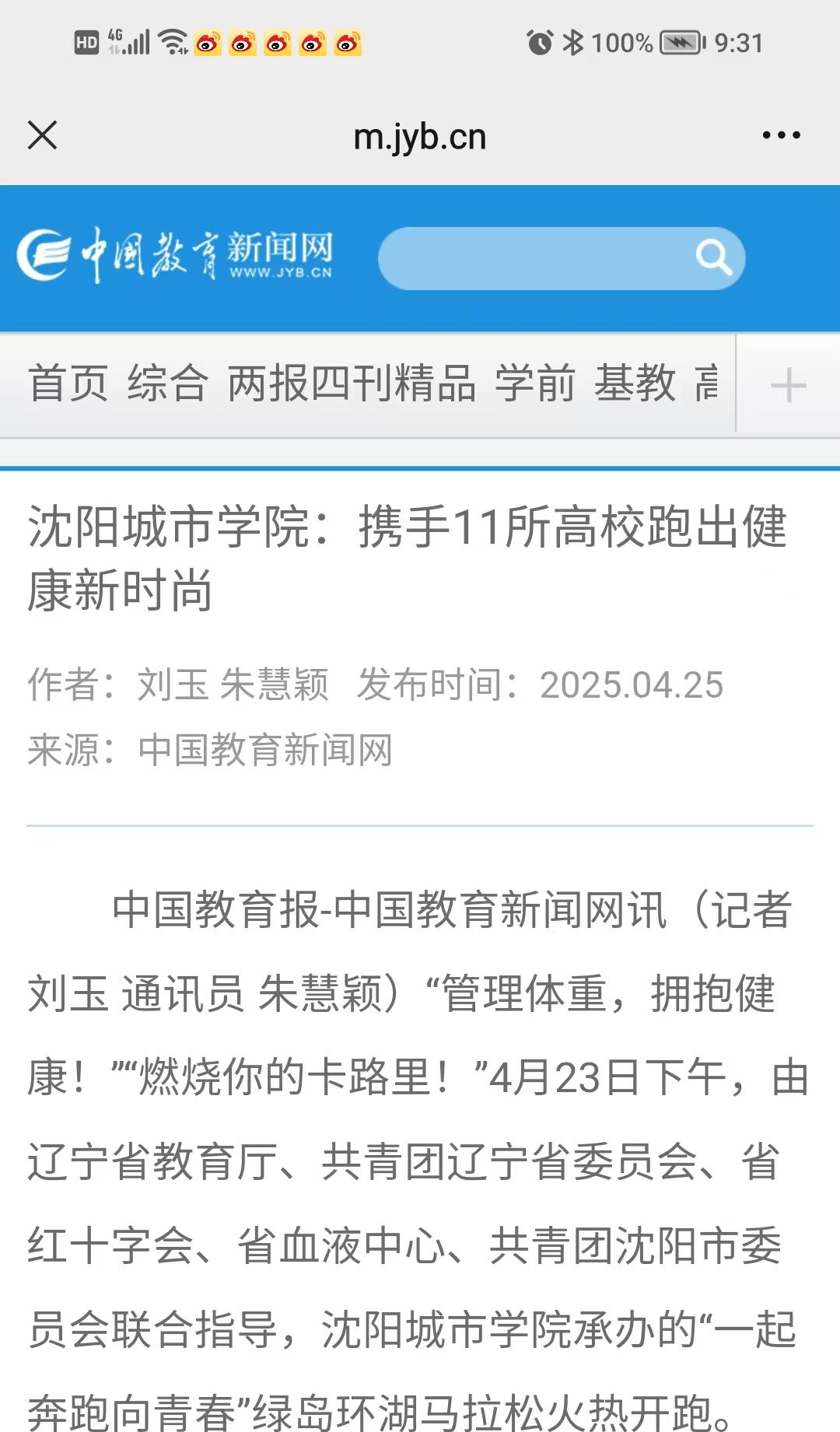 “管理体重,拥抱健康!”“燃烧你的卡路里!”由辽宁省教育厅、共青团辽宁省委员会、辽宁省红十字会、辽宁省血液中心、共青团沈阳市委员会联合指导,沈阳城市学院承办的“一起奔跑向青春”绿岛环湖马拉松得到了社会各界的关注。吸引了3800余名师生、12所高校、多国籍留学生参加的体育盛事被国内多家权威主流媒体关注,其中中国教育报、中国新闻网、中国教育在线、央广网、中国交通广播 、辽望·辽宁日报、腾讯等10余主流媒体均以大篇幅对此进行报道。