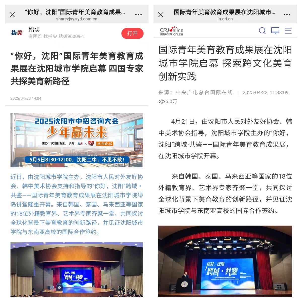 作为沈阳市国际交流示范基地,沈阳城市学院长期以来为沈阳民间对外交流做出了突出贡献。这次文化交流活动不仅为师生提供了高水平的艺术鉴赏机会,也为中韩艺术教育合作搭建了新的桥梁。中国日报、中国青年报客户端 、中央广电总台国际在线、中国交通广播FM993、中国教育在线、网易新闻、沈阳晚报指尖沈阳等10余家主流媒体对此进行报道。
