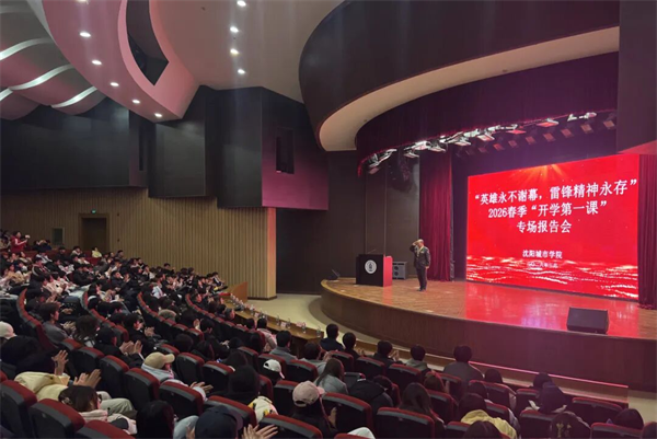 为持续深化“英雄永不谢幕”春季开学第一课育人成效,推动英雄精神与雷锋精神深度融合,引导广大师生筑牢思想根基、厚植家国情怀,3月11日,沈阳城市学院在绿岛讲堂举办“英雄永不谢幕,雷锋精神永存”2026年春季“开学第一课”专场报告会。学校特邀党的十四大代表、被中央军委授予“学雷锋模范”荣誉称号、荣获一级英模奖章的铁岭军分区原副政委张子祥同志担任主讲。