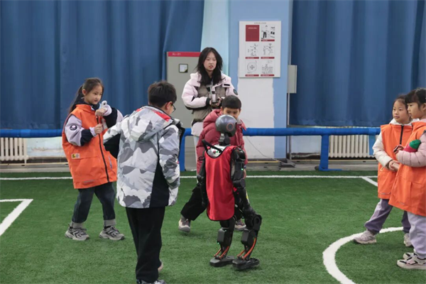 走进机器人工程中心,孩子们近距离观察机器人的结构与运动逻辑,并与它们进行简单互动。在这里,前沿科技从概念变为可触摸、可对话的现实存在。